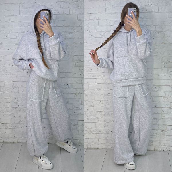 0620-66 светло-серый женский спортивный костюм(5`th Avenue, турецкая трехнитка, флис, 3 ед, размеры норма: 42, 44, 46)