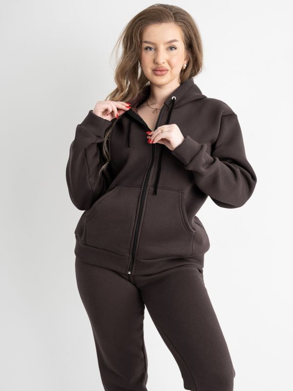 0645-91 коричневый женский спортивный костюм (5'TH AVENUE, турецкая трехнитка, флис, 3 ед. размеры батал: 56. 58. 60)