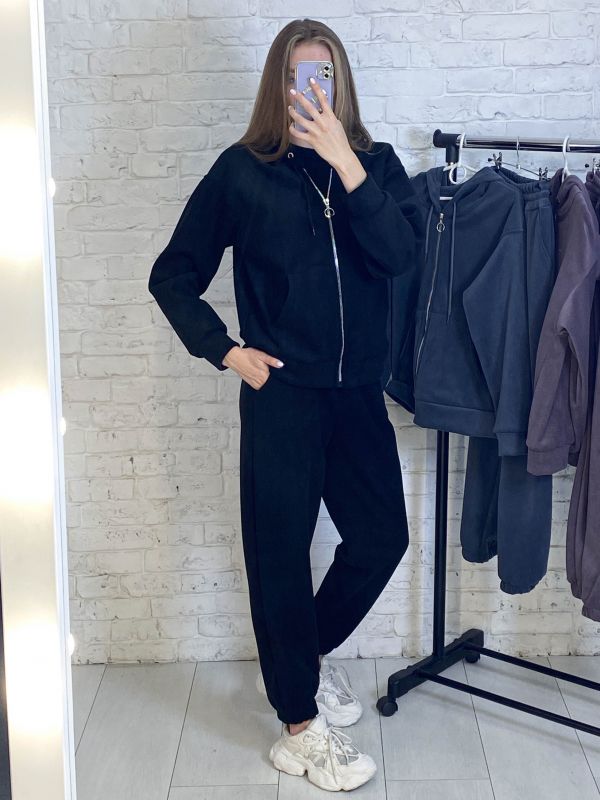 0737-12 черный женский спортивный костюм (5'TH AVENUE,турецкий полар-флис 2 ед. размеры норма: 44, 48)