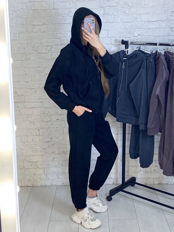 0738-1 черный женский спортивный костюм (5'TH AVENUE,турецкий полар-флис 3 ед. размеры полубатал: 50, 52, 54)