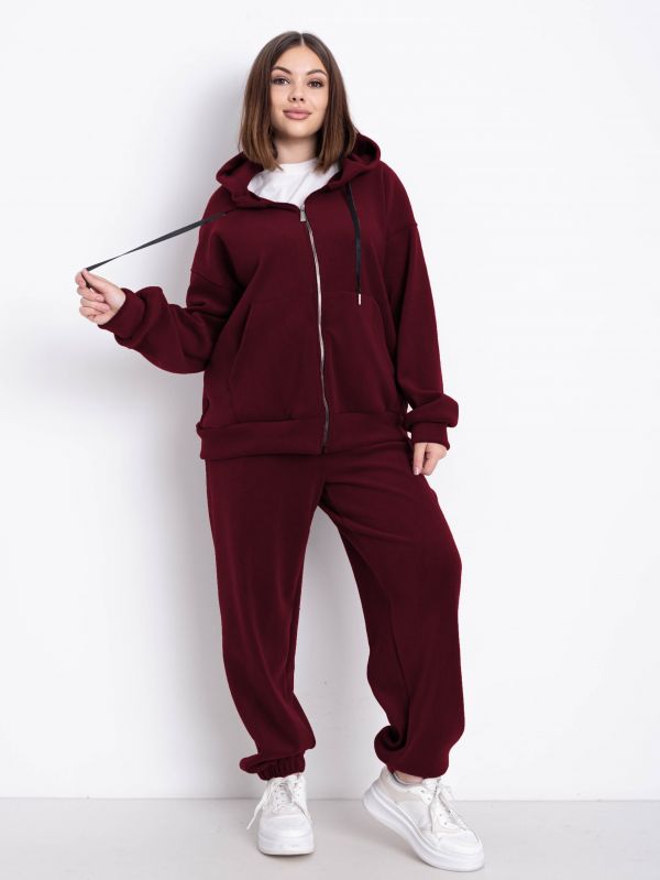 0738-52 бордовый женский спортивный костюм (5'TH AVENUE,турецкий полар-флис 3 ед. размеры батал: 50, 52, 54)