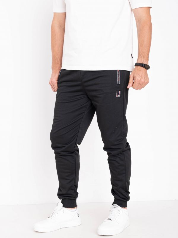 0109-14 черные мужские спортивные штаны (AOLONG, двунитка, 4 ед. размеры на бирках: XL-4XL, соответствуют норме: M-2XL)