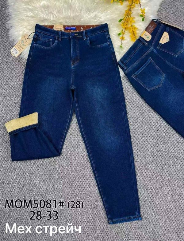 5081 * синие женские джинсы мом на меху (VIDASION, 6 ед. размеры полубатал: 28. 29. 30. 31. 32. 33) выдача на следующий день