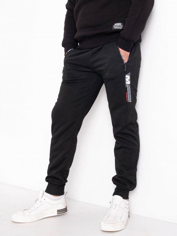 1005-1 черные мужские спортивные штаны (трехнитка на флисе, на манжете, 4 ед. размеры: L. XL. 2XL. 3XL, соответствуют M. L. XL.