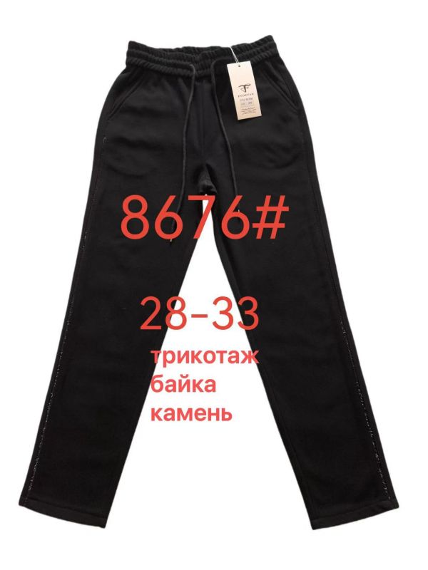 8676 # чёрные трикотажные штаны на байке (Fudeyan, 6 ед, размеры полубатал: 28-33) выдача на следующий день