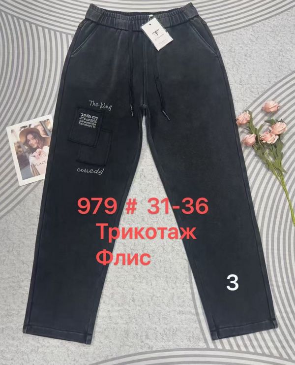 0979# серые женские трикотажные брюки на флисе (Fudeyan, 6 ед, размеры батал: 31-36) выдача на следующий день