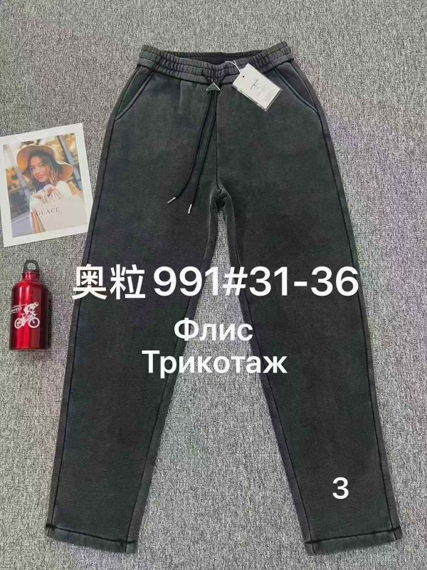 0991# серые женские трикотажные брюки на флисе (Fudeyan, 6 ед, размеры батал: 31-36) выдача на следующий день