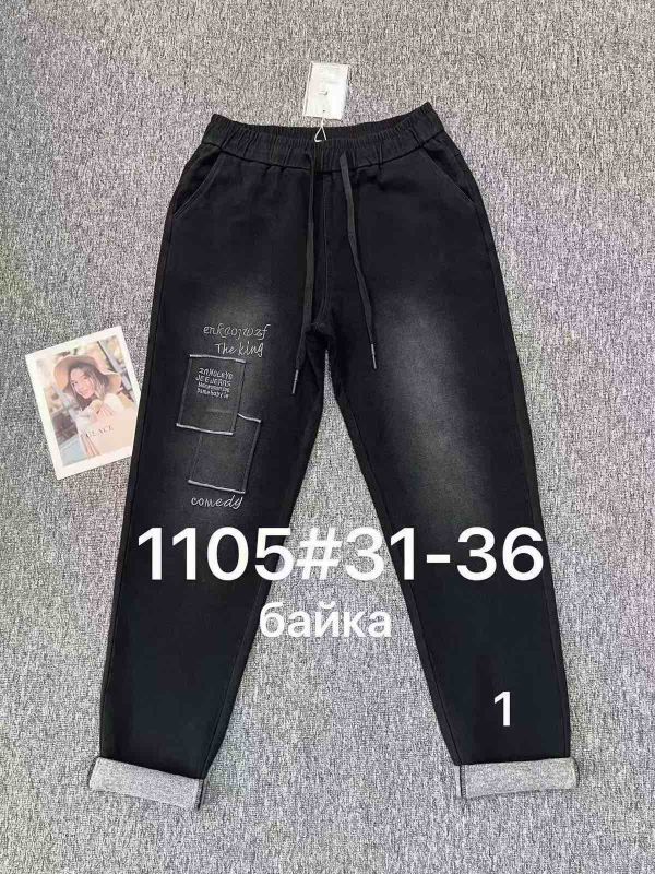 1105# чёрные женские джинсы на байке (Fudeyan, 6 ед, размеры батал: 31-36) выдача на следующий день