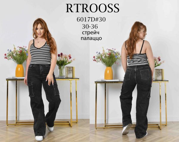 6017* серые женские джинсы палаццо с карманами (RTROOSS, стрейч, 6 ед, размеры батал: 30-36) выдача на следующий день