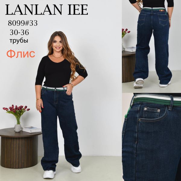 8099# синие женские джинсы на флисе (LANLANIEE, 6 ед, размеры батал: 30-36) выдача на следующий день