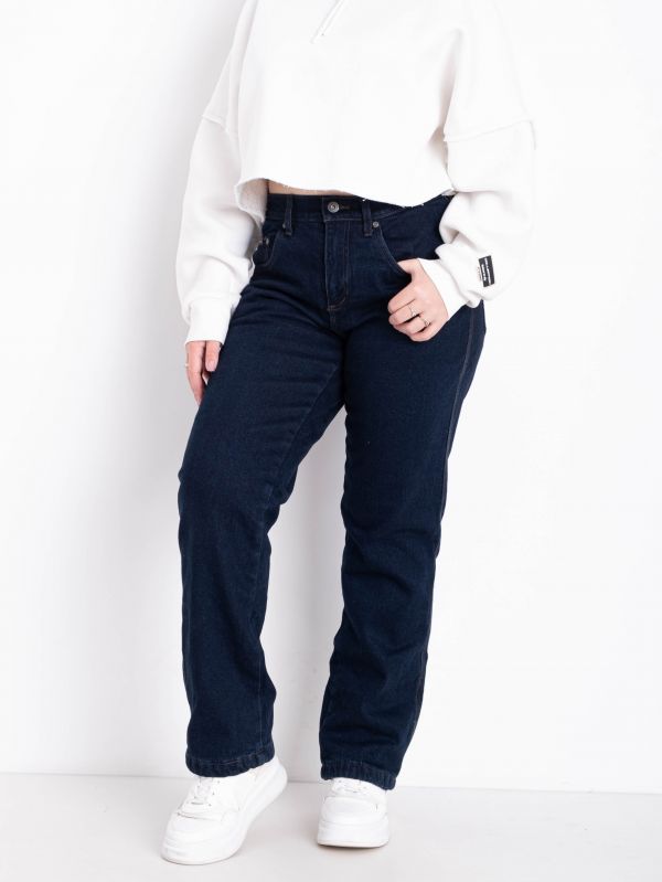 9834-44 темно-синие женские теплые джинсы (флис, стрейчевые, 4 ед. размеры полубатал: 30, 32, 34, 36)