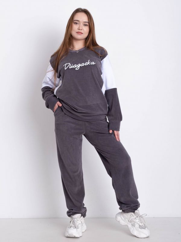 12480-6 серый женский спортивный косюм (SARA, велюр, 2 ед. размеры полубатал: 46/48, 50/52)