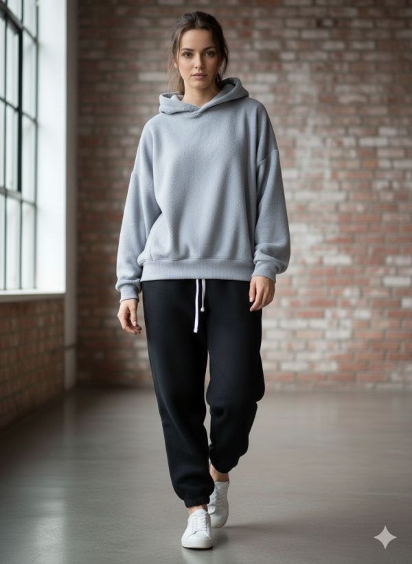 228002-10 светло-серый женский спортивный костюм (YOLA. турецкий полар-флис, OVERSIZE, с капюшоном, 4ед, размеры норма:S/M. S/M.