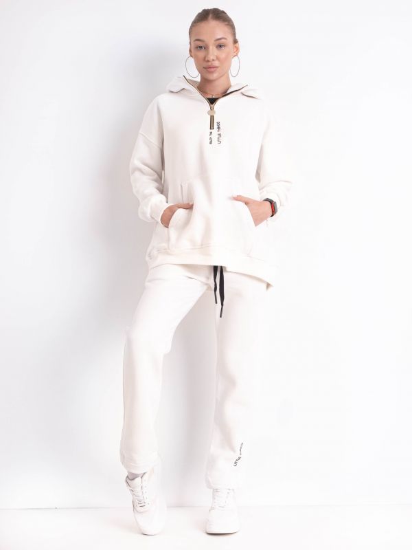 4087-10 белый женский теплый спортивный костюм (не кошлатится, турецкая трехнитка, флис, 4 ед. размеры норма: S. M. L. XL)