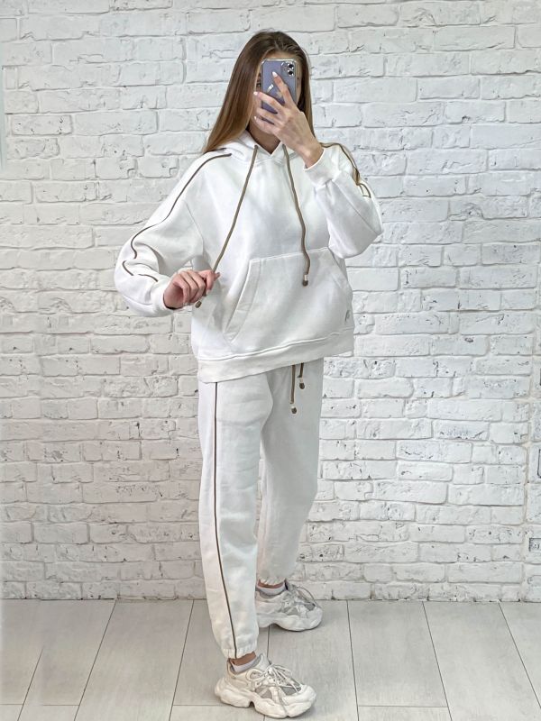 4087-10 белый женский теплый спортивный костюм (не кошлатится, турецкая трехнитка, флис, 4 ед. размеры норма: S. M. L. XL)