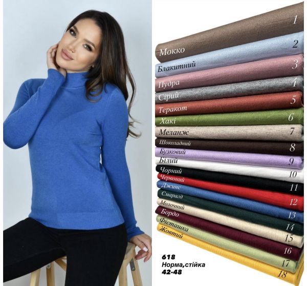 0618 * микс цветов женский кашемировый гольф (6 ед, размеры норма: 44-48) выдача на следующий день
