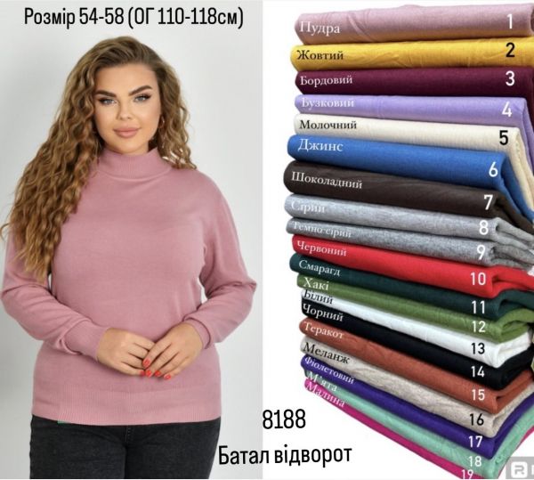 8188* микс цветов женский кашемировый гольф (6 ед, размеры батал: 54-58) выдача на следующий день